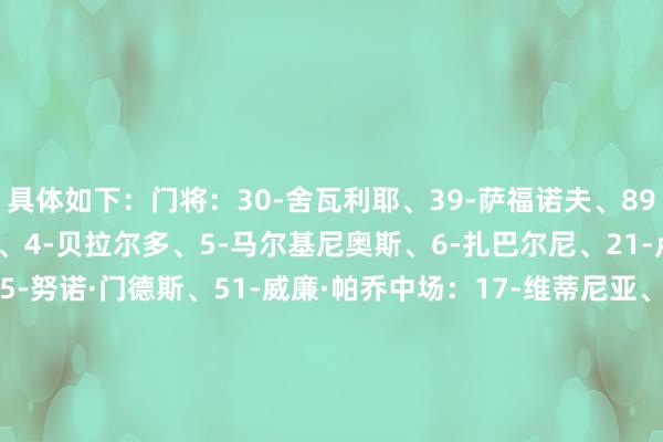 【更多...】具体如下:门将:30-舍瓦利耶、39-萨福诺夫、89-马林后卫:2-阿什拉夫、4-贝拉尔多、5-马尔基尼奥斯、6-扎巴尔尼、21-卢卡斯·埃尔南德斯、25-努诺·门德斯、51-威廉·帕乔中场:17-维