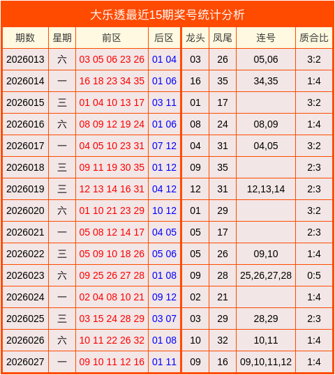 大乐透最近15期分析