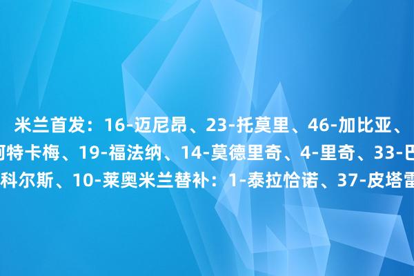【更多...】米兰首发:16-迈尼昂、23-托莫里、46-加比亚、31-帕夫洛维奇、24-阿特卡梅、19-福法纳、14-莫德里奇、4-里奇、33-巴特萨基、56-萨勒马科尔斯、10-莱奥米兰替补:1-泰拉恰诺、37